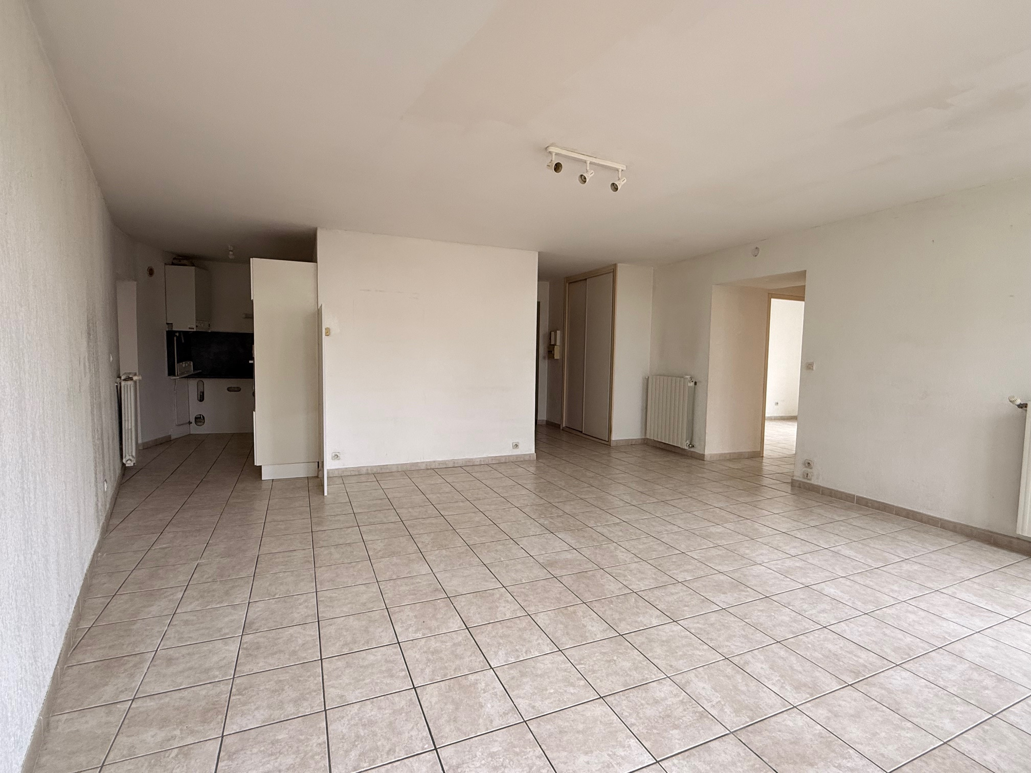Appartement spacieux de type 3, proche centre ville offrant une grande pièce à vivre avec coin cuisine, 2 chambre, salle de bains et wc.