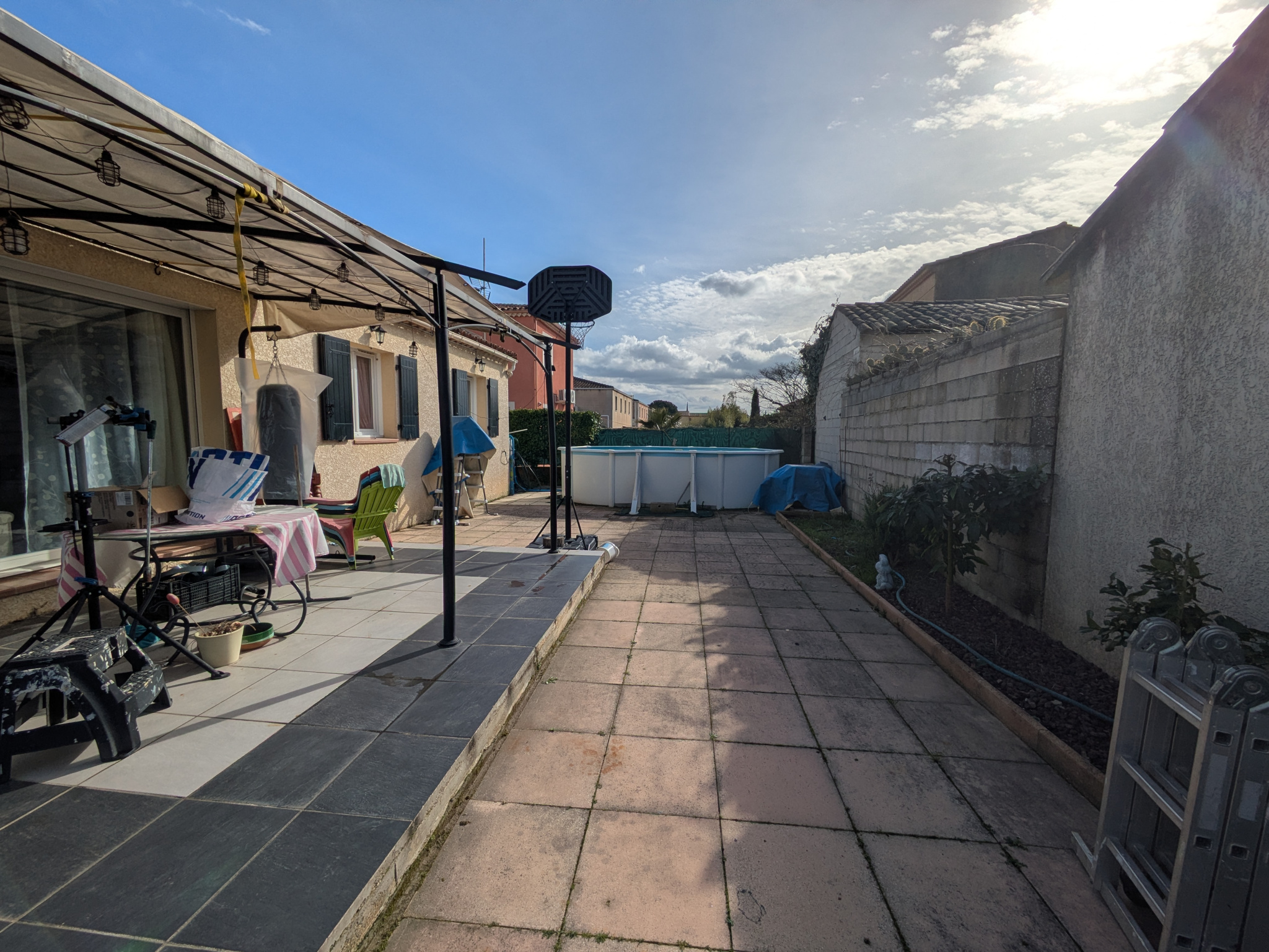 Une piscine hors sol est vendu avec la maison.
